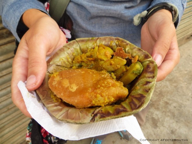 Fried dough with potato curry