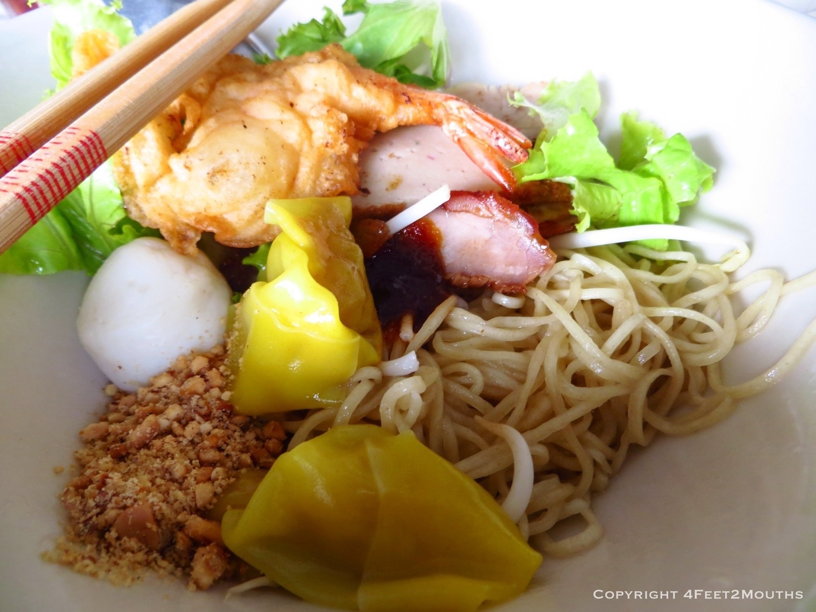 Dry noodles with pork and dumplings