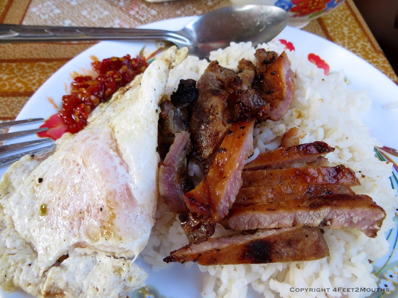 Breakfast pork, egg and rice